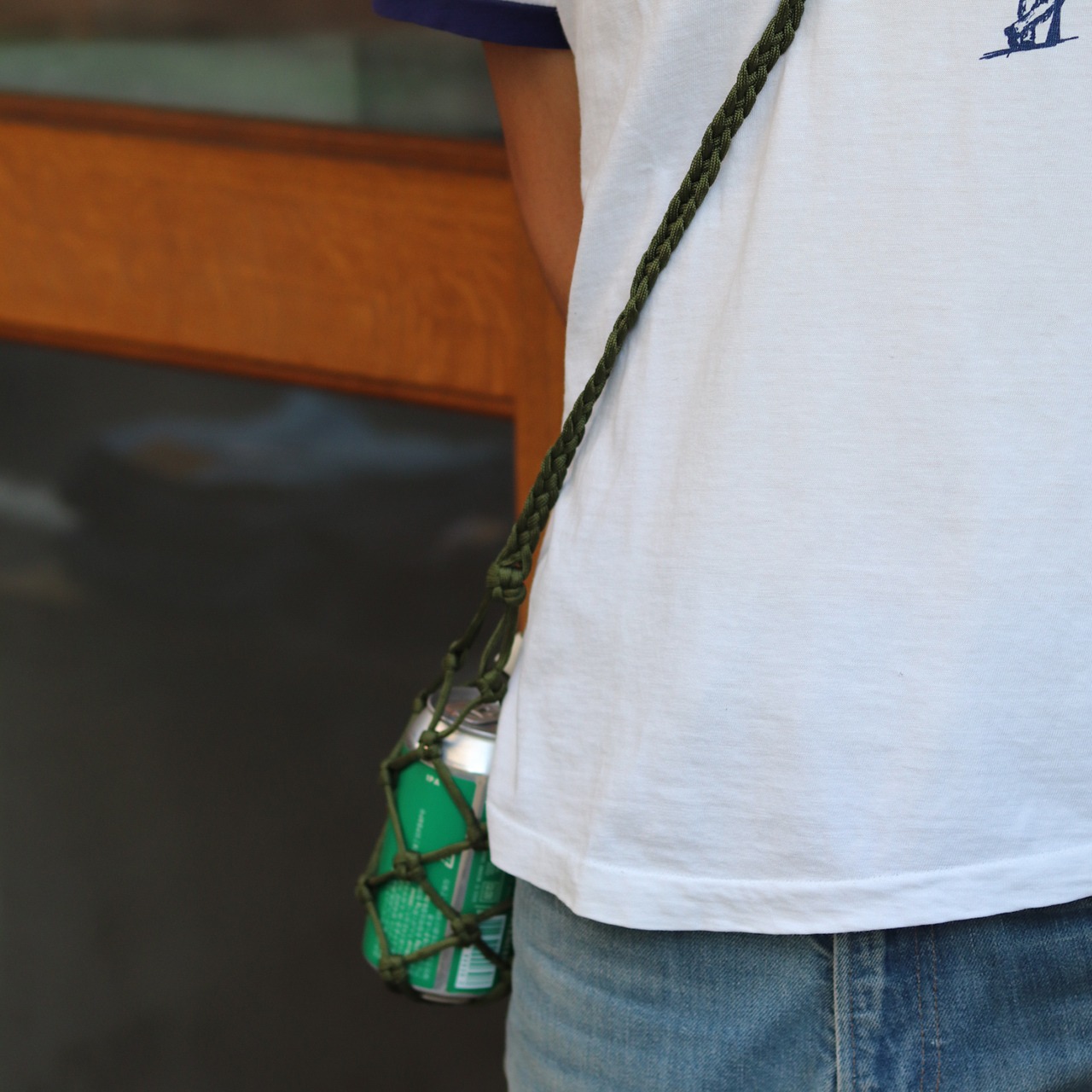 パラコードで作ったハンドメイドのボトルホルダー。缶、瓶、ペットボトルにお使いいただけます。軽量かつ耐久性に優れているため、日常使いやハイキング、フェスといったアウトドアシーンでも大活躍です。