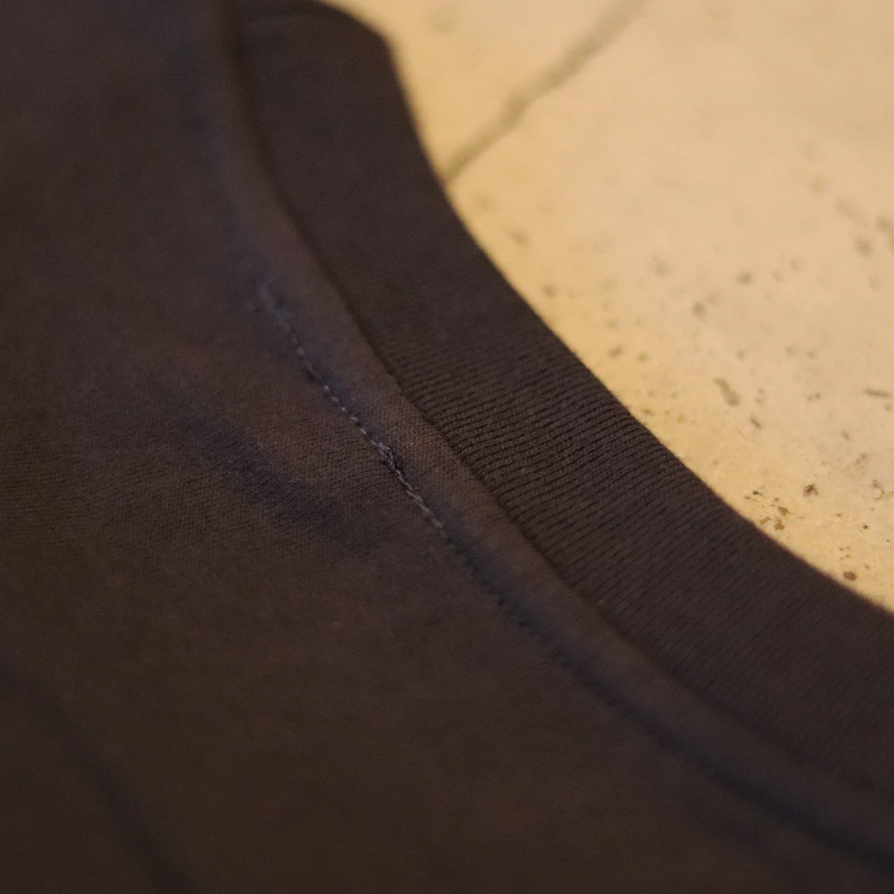 ネックラインはシングルステッチ。